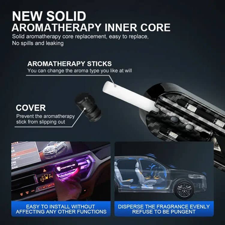 1.Healthy Breathing: The fragrance inside the machine comes from the solid aroma core, which has a long-lasting fragrance. When the fragrance fades or disappears, the fragrance core can be replaced. Use our air freshener to say goodbye to the odor in the car and enjoy a comfortable and fragrant journey.