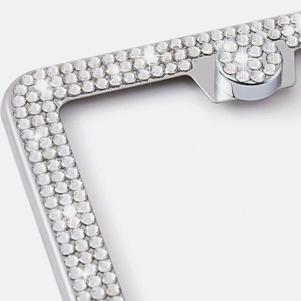 2,Exquisite Design: This license plate has a narrow frame. It is small and cute. The frame is sparkling under the sun and at night. It is attractive and dazzling.