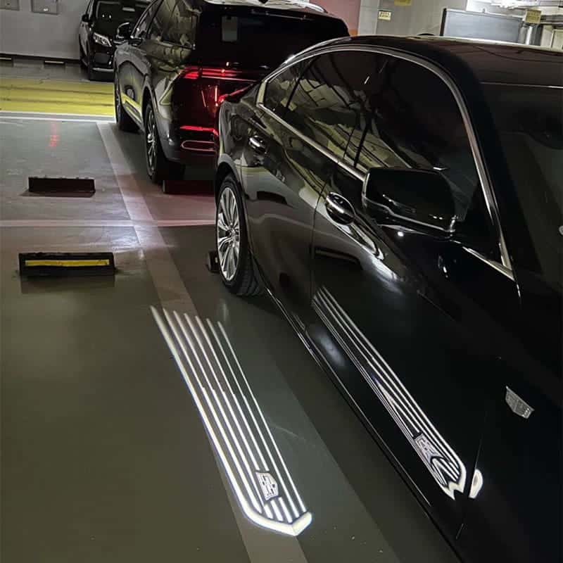 2,Vivid Clarity: Our car mirror lighting, equipped with a high-brightness LED chip, ensures a clear view near your car door. The Cadillac logo shines brightly with vivid colors and high-definition precision, facilitating seamless entry and inspection.