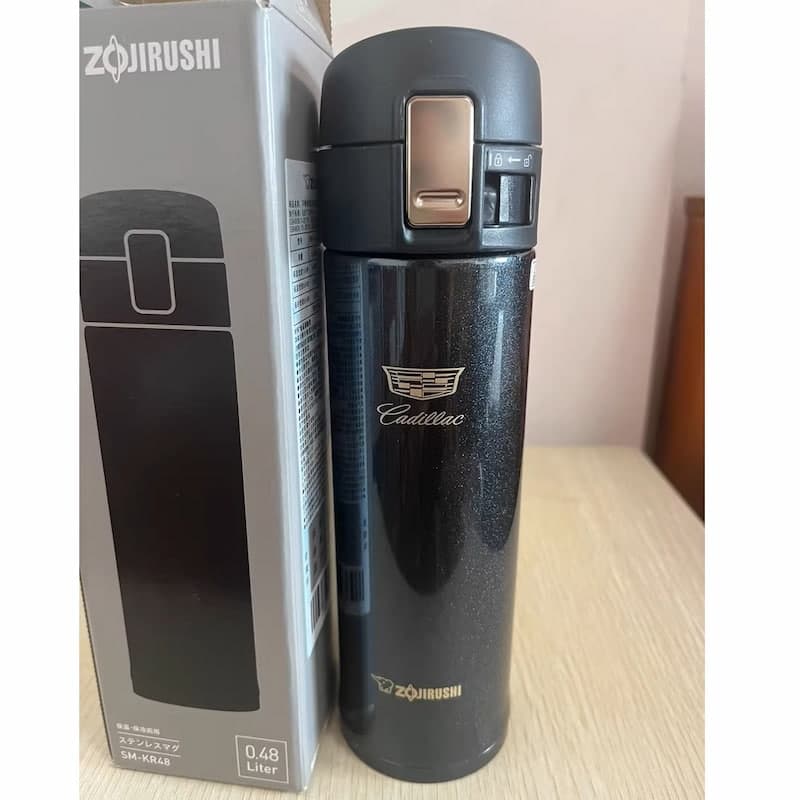 The Cadillac Zojirushi Thermos Cup is a great choice for those who want a cup that both looks good and works well. There is a Cadillac logo is on the cup which makes it unique and fashionable. It is perfect for people who like special and cool designs.