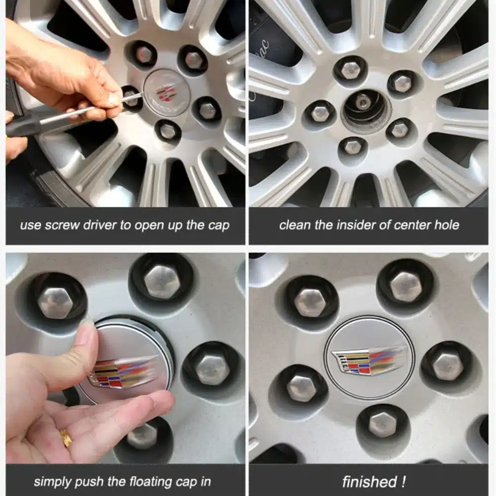 4,Easy Installation: Installing our caps is a breeze, offering a hassle-free upgrade to your Cadillac’s wheels.
